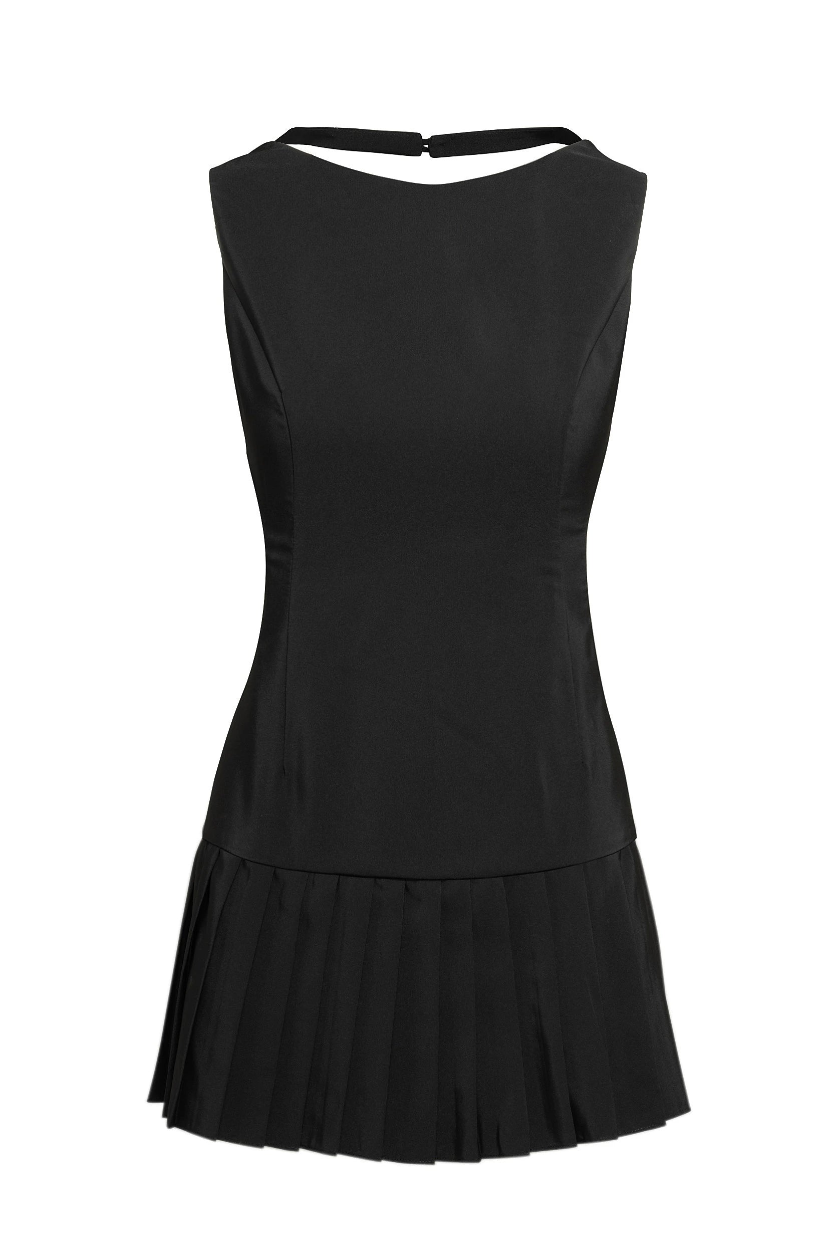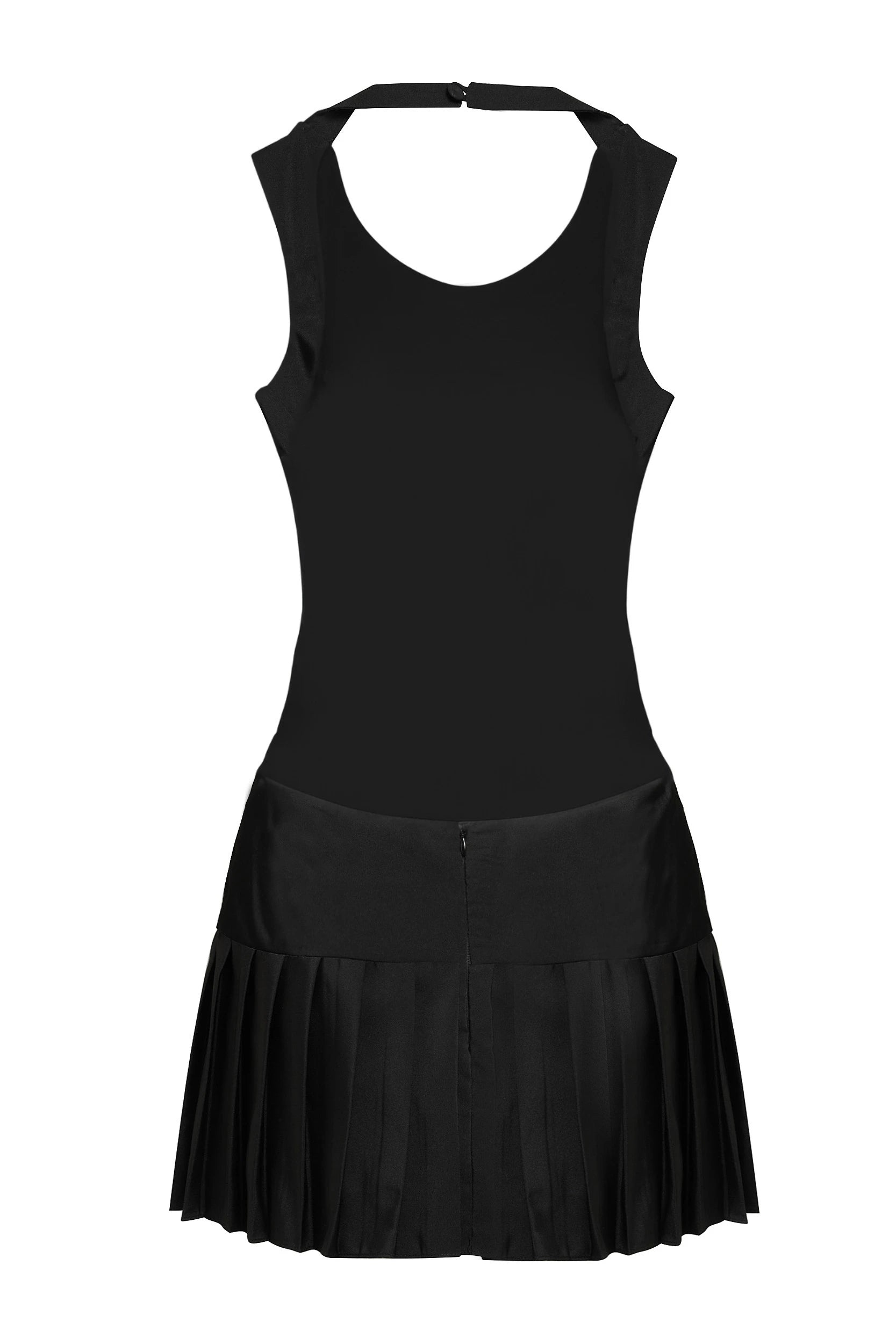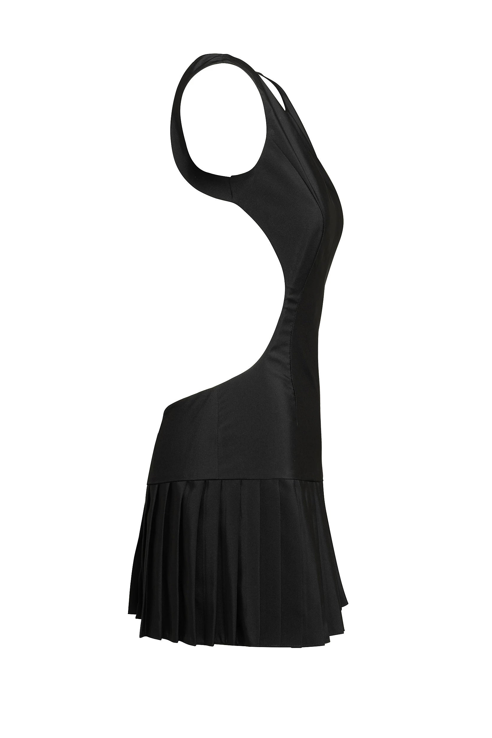 A summer party essential that exudes confidence and style. Crafted from luxurious Crêpe Marocain fabric and meticulously tailored to perfection, this captivating black dress embraces the spirit of fun and celebration. Its daring open back design adds a touch of playful sophistication, while the sleek silhouette accentuates your magnetic presence.